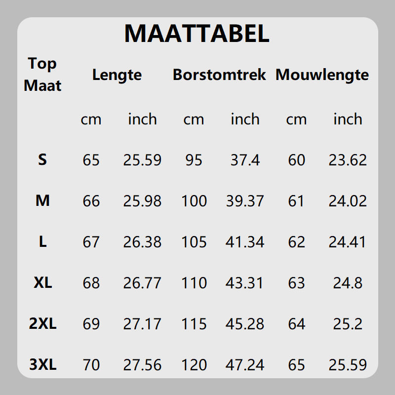 Maat: S, M, L, XL, 2XL, 3XL