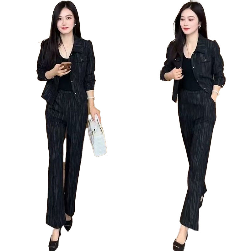 Elegant Getextureerd Pak - Kort Jas & Wijde Pijpen Broeken