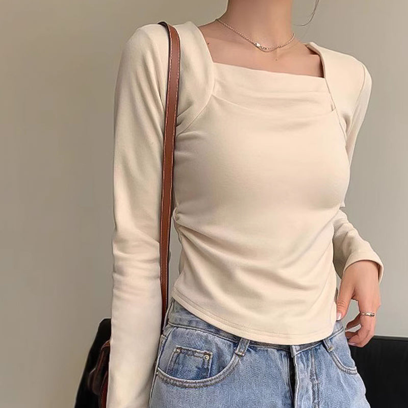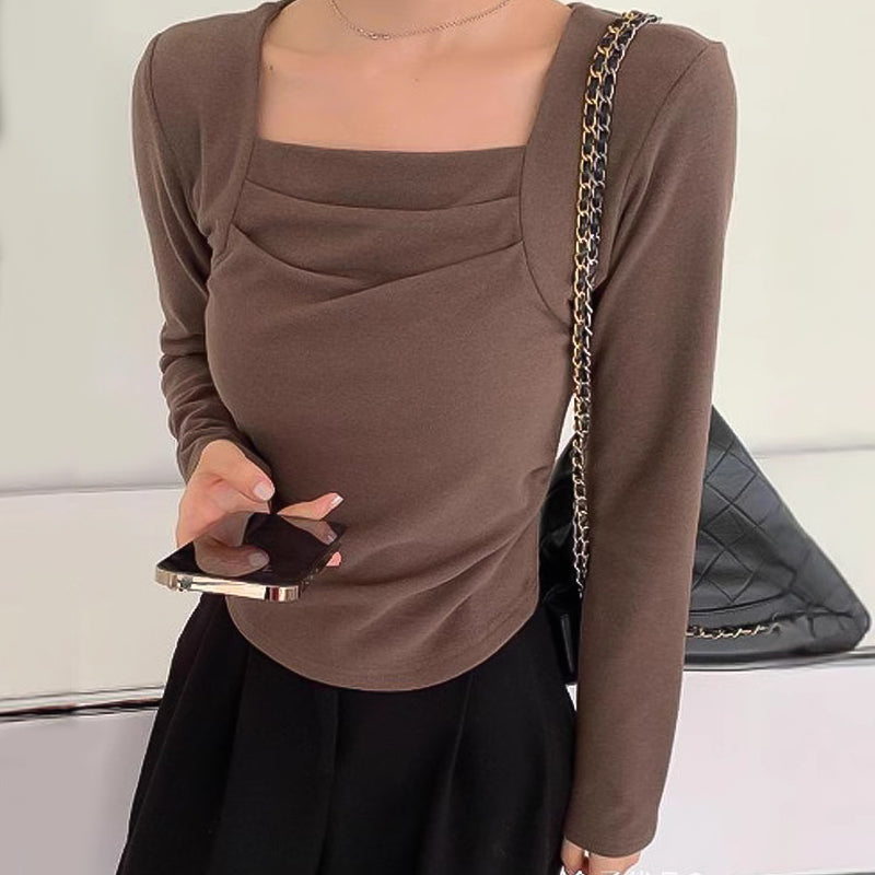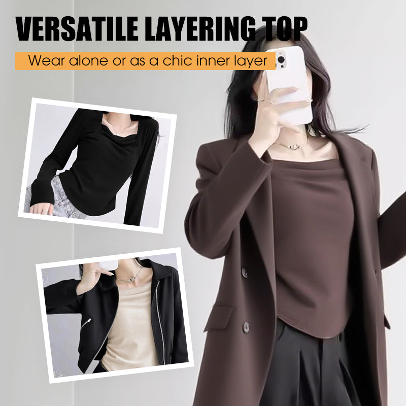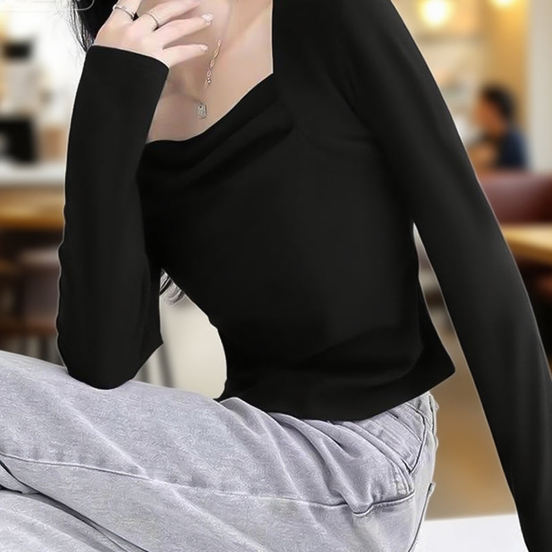 Geplooide basislaagtop met vierkante hals voor dames