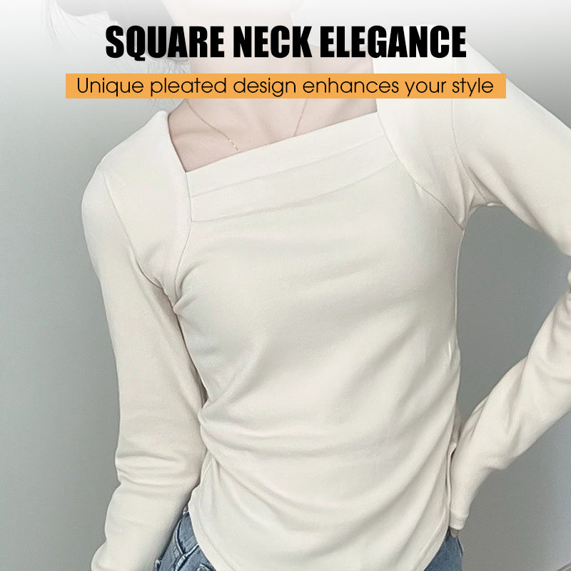 ONTWERP MET VIERKANTE HALS - Voorzien van een unieke vierkante halslijn met subtiele geplooide details, voor een chique en uitgesproken esthetiek. Dit ontwerp verbetert het decolleté en zorgt voor een stijlvol silhouet dat geschikt is voor verschillende gelegenheden.