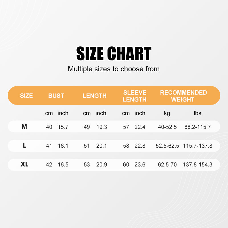 Raadpleeg de maattabel voor de juiste pasvorm op basis van gewichtsaanbevelingen.